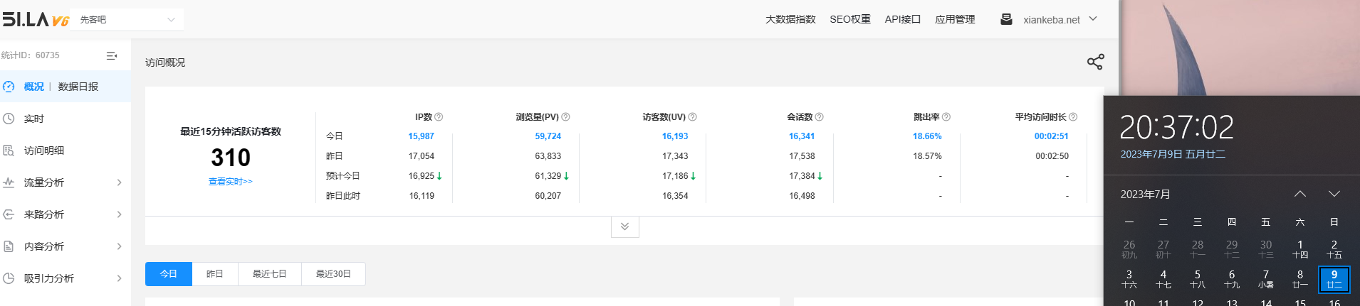 目前网站每日流量稳定在1W+左右( 不做虚假流量,有一说一 更新时间:2023/7/9)点击预览流量